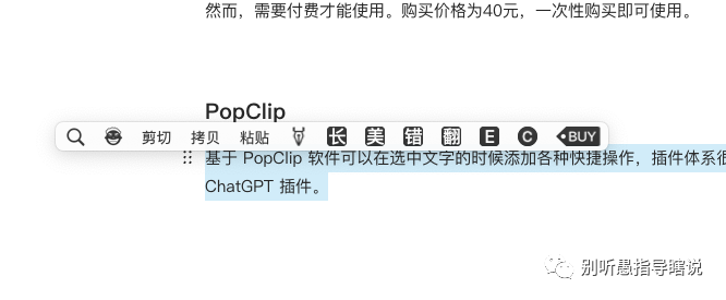 亲爱的,你知道嘛,基于 PopClip 这款神器,当你选中文字的时候,可以直接添加各种快捷操作,而且插件体系超级强大。想要加上 ChatGPT 插件也不是什么难事啦,只需要几行简单的代码,就能搞定哦~